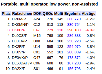 Die KW-OPs waren: Volker, DL4ZBG; Christoph, DL3DAW und Jens, DG3FFM. Das vorläufige Ergebnis von DK0B/p: Platz 3 in DL und Platz 1 in Hessen.