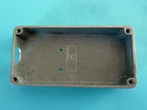 Montiert man einen solchen Chipwiderstand auf einen größeren Kühlkörper und schließt ein Kabel an, ist man im Grunde schon fertig. Ich hatte darüber hinaus den Anspruch, dass das Ganze nicht nur mechanisch stabil, sondern auch ein bisschen nach was aussehen sollte. Die Lösung fand sich in einem 100x50x26 mm großen Gehäuse aus Aluminium-Druckguss (Amazon) und einem maßlich dazu passenden Kühlkörper (ebay). Diese beiden, hauptsächlich aus optischen Gründen gewählten Teile, machen den Großteil der gesamten Kosten aus.