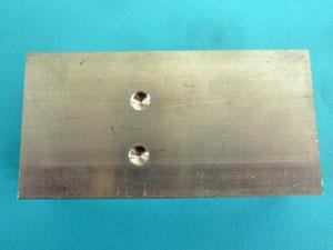 Wenn alle Teile bereit liegen, ist der komplette Bau eine Sache von weniger als zwei Stunden. Zunächst bohrt man in eine Seitenwand des Gehäuses das Loch für eine Koaxbuchse seiner Wahl. Da ich fast ausschließlich an KW-Betrieb interessiert bin, habe ich mich für eine SO239 entschieden. Natürlich kann man auch N, BNC oder SMA verwenden. Um eine optimale Wärmeverteilung zu erreichen, ordnet man den Chipwiderstand am besten mittig im Gehäuse an. Bei meinem Gehäuse ging das nicht, weil der Hersteller meinte, ausgerechnet dort ein Logo anbringen zu müssen. Ich habe deshalb eine glatte Stelle unmittelbar davor gewählt. Die Befestigung erfolgt mit zwei 10 mm langen M3 uben. Vor der Montage sollte man nicht vergessen durch die Gehäuselöcher, auf dem Kühlkörper die Stellen für die Vertiefungen, die zur Versenkung der Linsenköpfe (Bild 4) erforderlich sind, anzuzeichnen. Nachdem auch die gebohrt sind, kann man mit der endgültigen Montage beginnen.Um eine optimale Kühlung des Chipwiderstandes sicherzustellen, verwendet man eine hochwertige Wärmeleitpaste mit der sowohl die Rückseite des Widerstandes als auch das Metall des Gehäuses darunter dünn eingestrichen wird. Ein kleiner Tropfen genügt. Ich habe einen Rest der Paste benutzt, die beim Kauf einer CPU für einen PC mitgeliefert wurde. Es gehen aber auch andere Pasten. Je höher deren Wärmeleitfähigkeit desto besser.