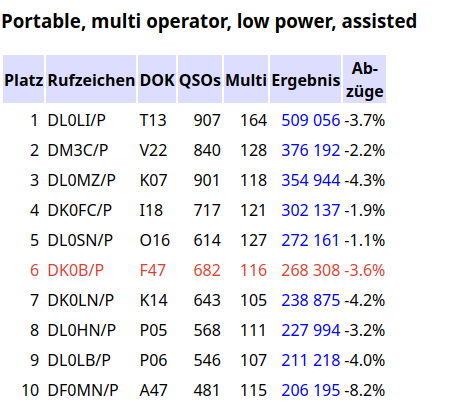 Wir haben diesmal mit etwa 268.000 Punkten abgeschlossen (diesmal in der Low Power Non- Restricted- Klasse mit Hexbeam für die oberen Bänder). In ein paar Tagen werden die Claimed Stores veröffentlicht und dann wissen wir ungefähr, wohin die Reise geht.